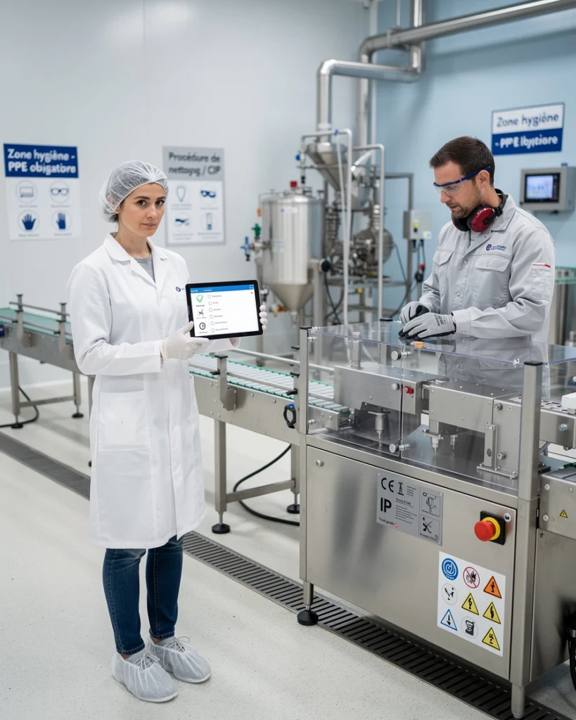 Le nettoyage en place (NEP) permet de décontaminer les équipements sans démontage. Un plan de nettoyage détaille les fréquences, produits et méthodes pour chaque zone :